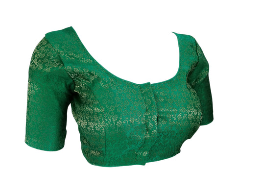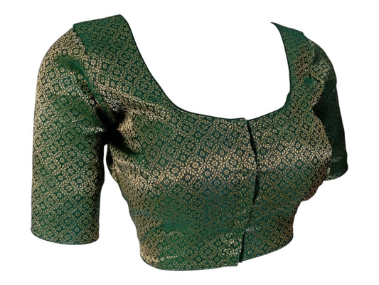 Forest Green Finesse: Brocade Silk Readymade Saree Blouse