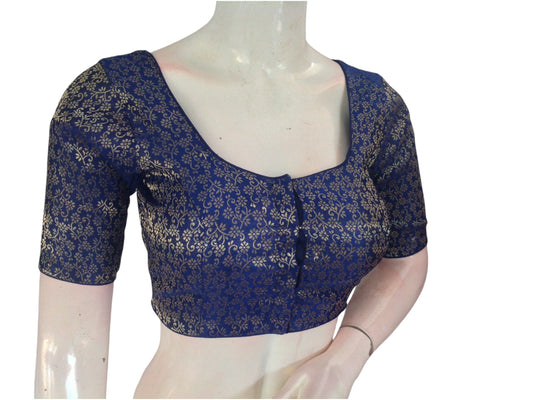 Navy Blue Elegance: Brocade Silk Readymade Saree Blouse