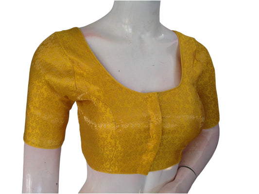 Sunny Yellow: Trendy Brocade Silk Readymade Saree Blouse