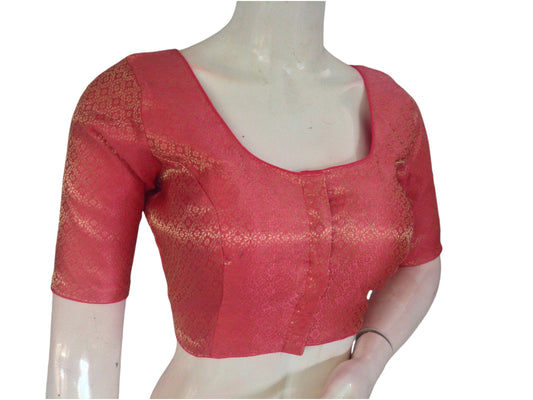 Blush Pink Beauty: Brocade Silk Readymade Saree Blouse