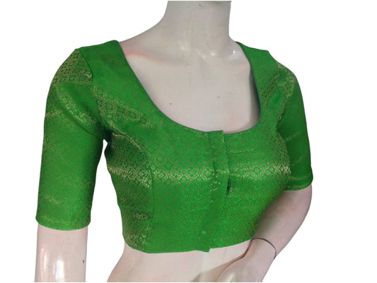 Parrot Green Paradise: Brocade Silk Readymade Saree Blouse