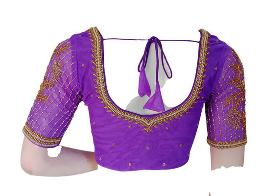 Royal Purple: Designer Netted Aari Handwork Readymade Saree Blouse