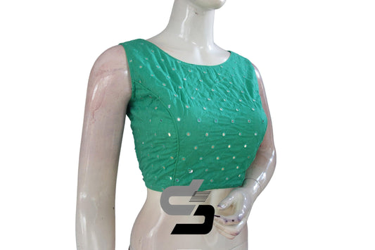 Teal Green Sleeveless Semi Silk Foil Mirror Readymade Blouse, Stunning Indian Crop TopsRegular price Rs550.00Regular priceUnit price / perRs750.00Sale price Rs550.00Sale