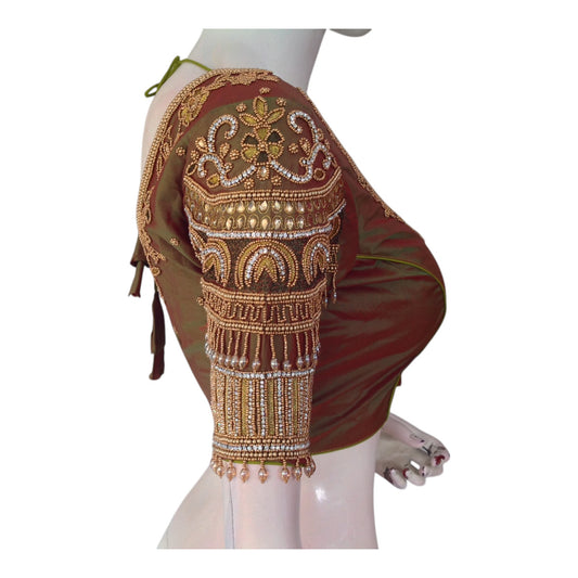 Olive Green Color Wedding Silk Blouse: Unique Diamond Aari HandworkRegular price Rs3,500.00Regular priceUnit price / perRs1,799.00Sale price Rs3,500.00