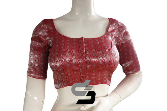 Red And Silver Mixed Brocade Silk Readymade Saree Blouse