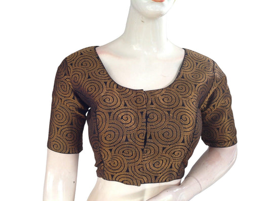 Black Color Brocade Readymade Saree Blouse, Indian Ethnic Silk Saree Blouse
