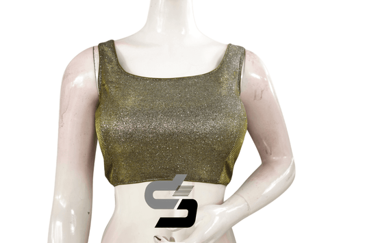 Olive Green Color Sleeveless Sparkly Glitter Designer Readymade Saree Blouse.