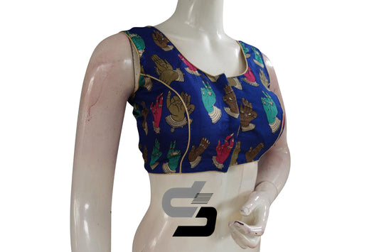 Royal Blue Color Printed silk Sleeveless Readymade saree blouse
