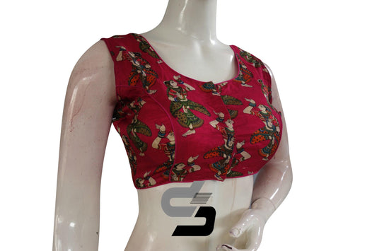 Magenta Color Printed silk Sleeveless Readymade saree blouse
