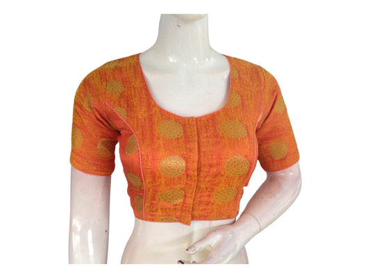 Orange Color Brocade Readymade Saree Blouse, Indian Traditional Blouse