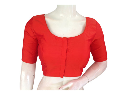 Dark Orange Silk Cotton Plain Readymade Saree Blouse - Indian Fashion