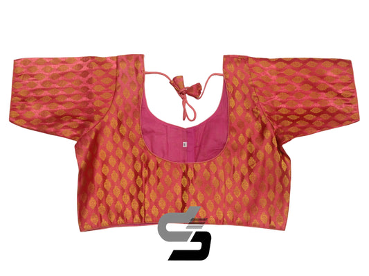 Peach Pink Color Plus Size Brocade Silk Readymade Saree Blouses, Indian Plus Size Blouse