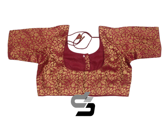 Maroon Plus Size Brocade Silk Saree Blouses, Ethnic Elegance