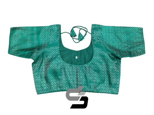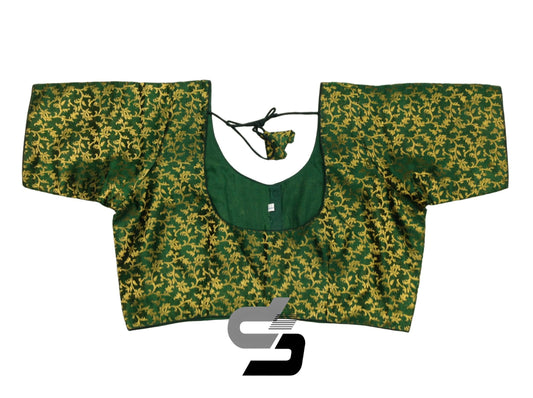 Green Plus Size Brocade Silk Saree Blouses, Indian Ethnic Wear