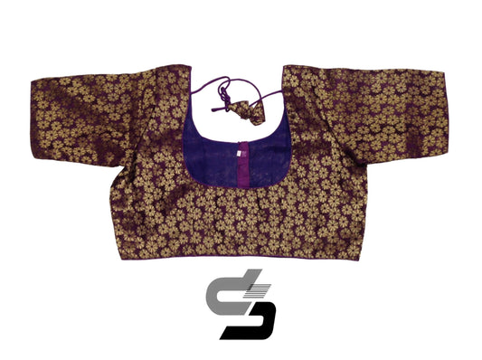Dark Magenta Plus Size Brocade Silk Saree Blouses, Indian Ethnic Wear
