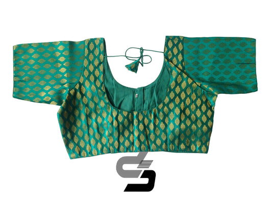 Teal Green Color Brocade Silk Readymade Saree Blouses, Indian Plus Size Blouse