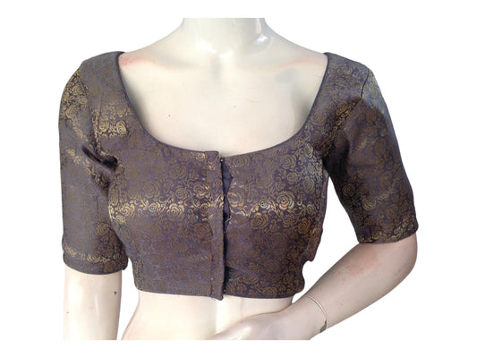 Grey Saree Blouse, Brocade Readymade Blouse, Plus Size Indian Choli top Online
