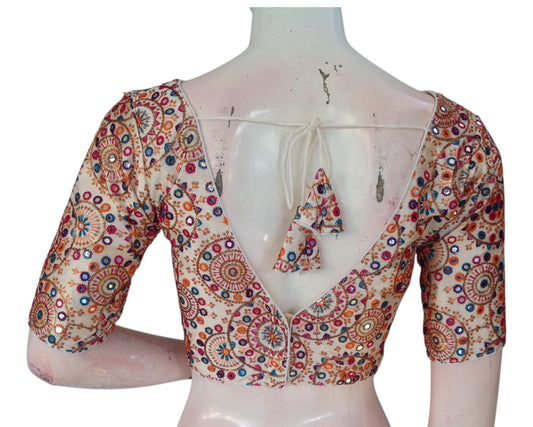 Off-White Semi-Silk Blouse for Festive Occasions: Multi-Thread Work
