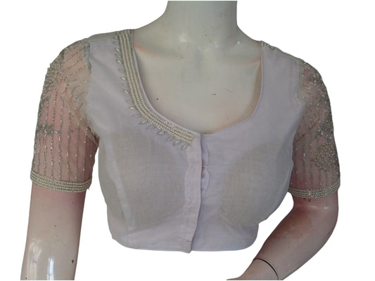 Pearl Perfection: Readymade Aari Handwork Readymade Saree Blouse