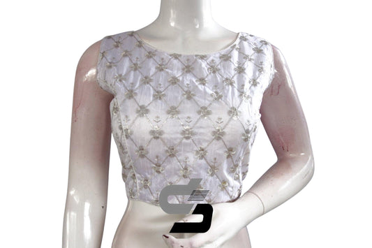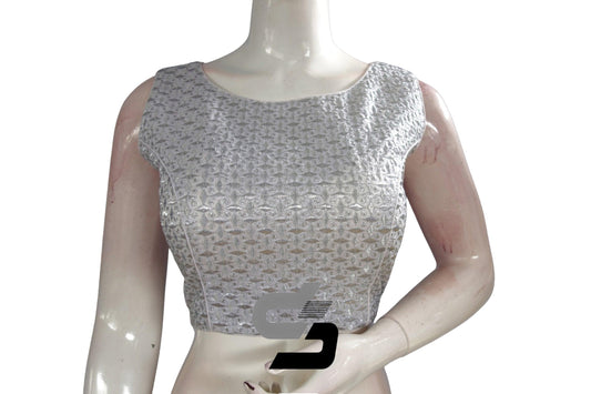 Silver Saree Blouse, Silk Saree Readymade Blouse, Indian Tissue Choli top from D3 Blouses