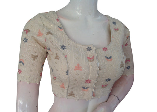 Sustainable Style: Hand-Embroidered Khadi Cotton Readymade Blouse