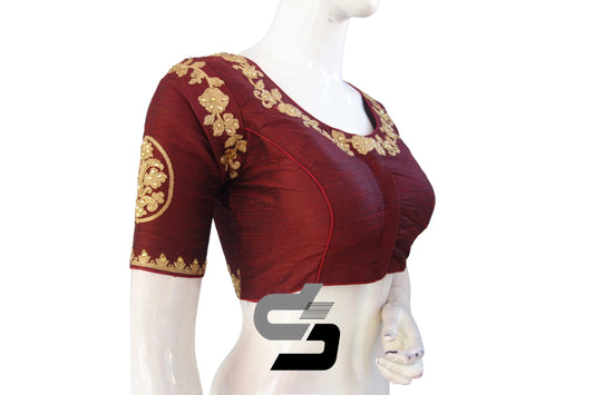 Maroon Magic: A Dazzling Handcrafted Designer Partywear Readymade Saree Blouse
