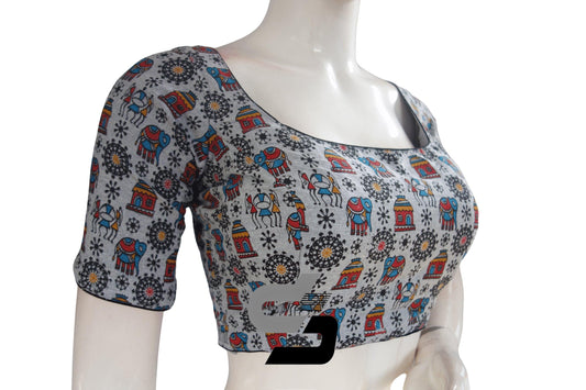 Jute Cotton Hand Blocked Indian Readymade Designer Blouse