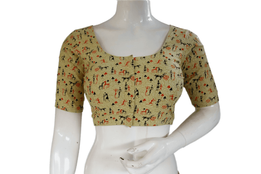 Yellow Color Cotton Printed Readymade Saree Blouse