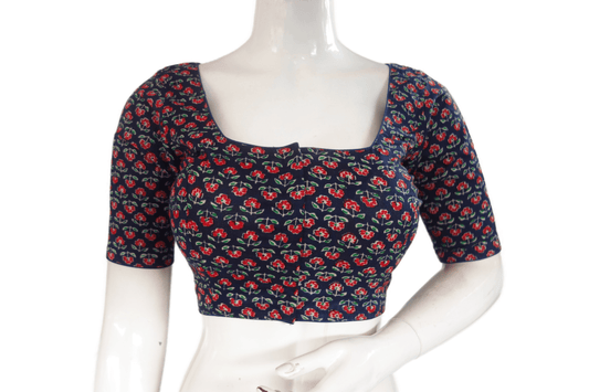 Navy Blue Color Cotton Printed Readymade Saree Blouse