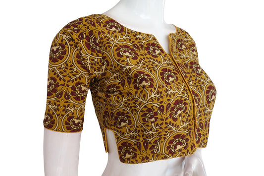 Mustard Yellow Color Ajrakh Boat Neck Cotton Readymade Blouse, Summer Wear for Sale