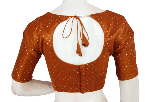 Terracotta Color Semi Silk Boat Neck Readymade Saree Blouse