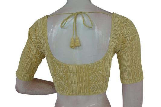 Pastel Yellow Color Chikankari Embroidery Readymade Blouse