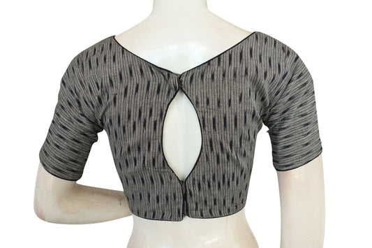 Elegant Women's Fashion, Black Ikkat Cotton Boat Neck Readymade Saree Blouses