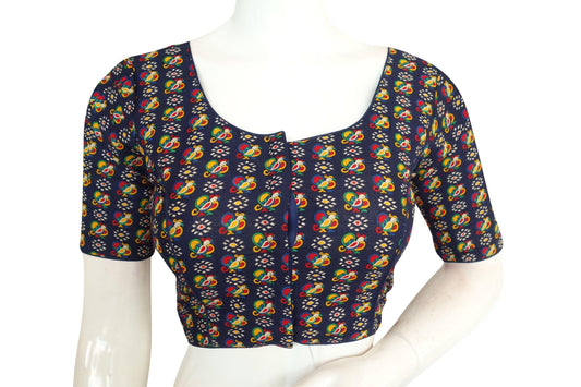 Navy Blue Color Cotton Printed Readymade Blouse From D3 Blouses