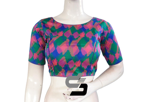 Printed Silk Multi Color Boat Neck Designer Readymade Blouse
