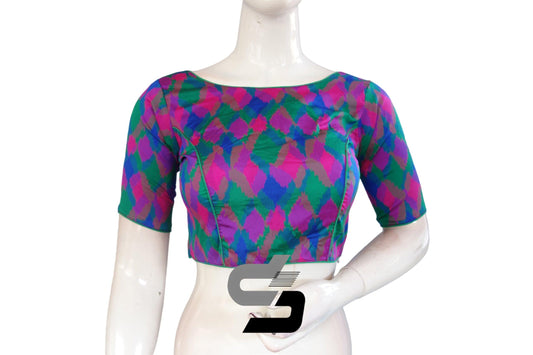 Printed Silk Multi Color Boat neck Designer Readymade Blouse