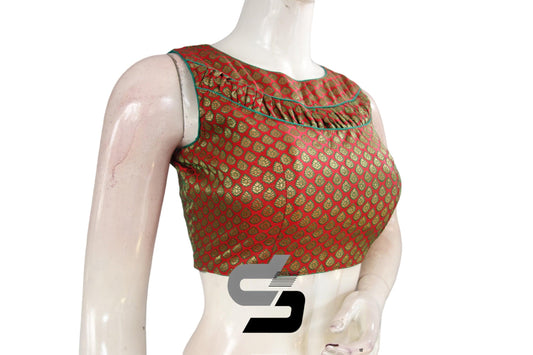 Red Color Boat Neck Brocade silk Readymade saree blouse, Indian Readymade blouse, Crop top,