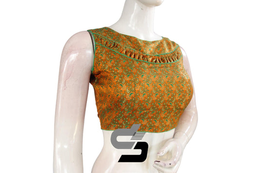 Mustard Orange Color Boat Neck Brocade silk Readymade saree blouse, Indian Readymade blouse, Crop top,
