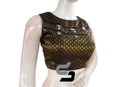 Black Color Boat Neck Brocade silk Readymade saree blouse, Indian Readymade blouse, Crop top,