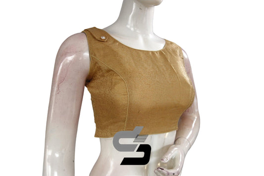 Gold Color Boat Neck Brocade silk Readymade saree blouse, Indian Readymade blouse, Crop top,