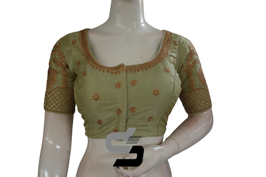 Green Color Semi Silk Designer Embroidery Readymade Saree Blouse