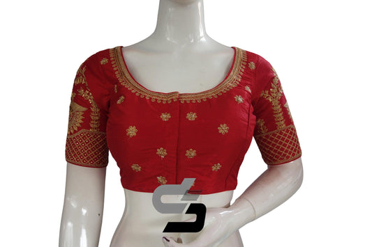Red Color Semi Silk Designer Embroidery Readymade Saree Blouse