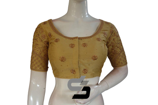 Gold Color Semi Silk Designer Embroidery Readymade Saree Blouse