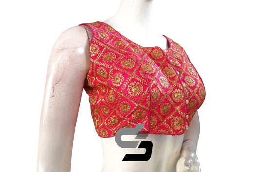 Elevate Your Style with Chic Pink Ikkat Cotton Designer Blouse featuring Puff Sleeves