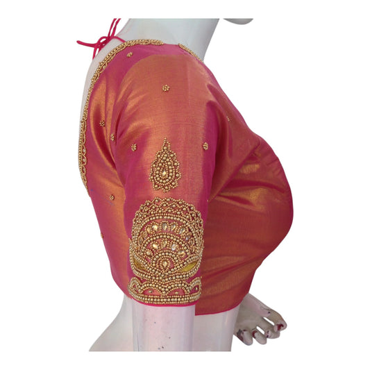 Exquisite Pink Color Aari Handwork Bridal Silk Saree Blouse