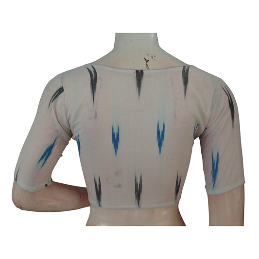 Pristine Elegance: White Cotton High-Neck Readymade Saree Blouse