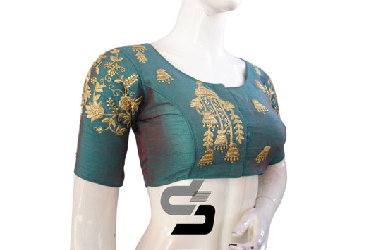 Teal Tissue Silk Aari Work Wedding Blouse - Sophisticated Style from D3 Blouses