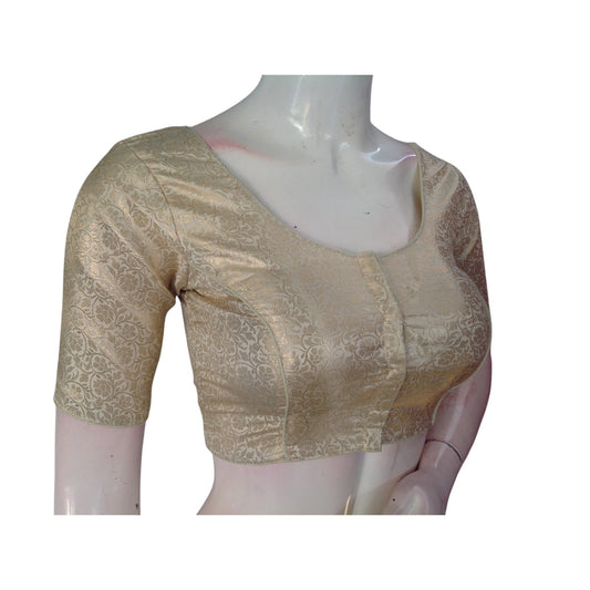 Timeless Elegance: Off-White Brocade Silk Readymade Saree Blouse
