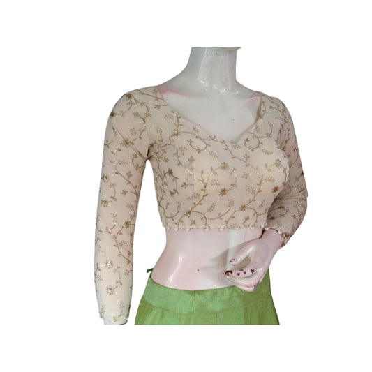 Timeless Elegance: Off-White Cotton Readymade Saree Blouses | USA