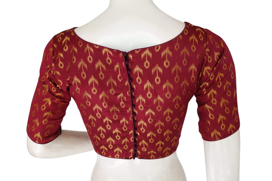 Wine Colour Brocade Silk Designer Boat Neck Readymade saree blouse with Potli Button